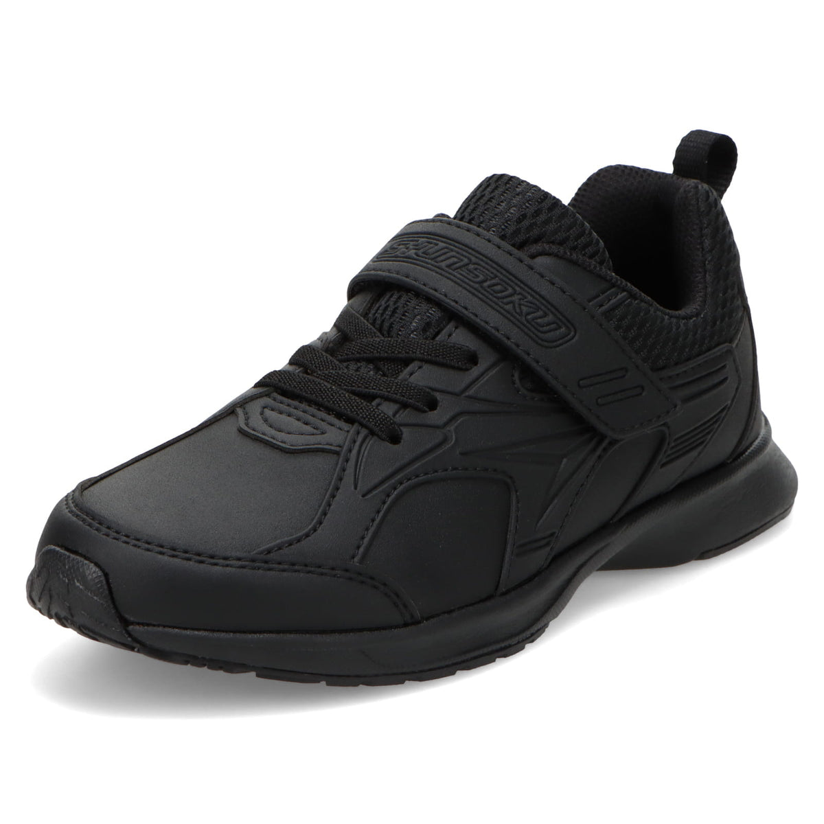 雨や泥汚れにも強い合皮製アッパー×ゴム紐仕様のモデル。脱ぎ履きしやすい面ファスナー式。軽量で足にピッタリフィットするから、1日中履いても疲れにくい!便利な名入れスペース付き。