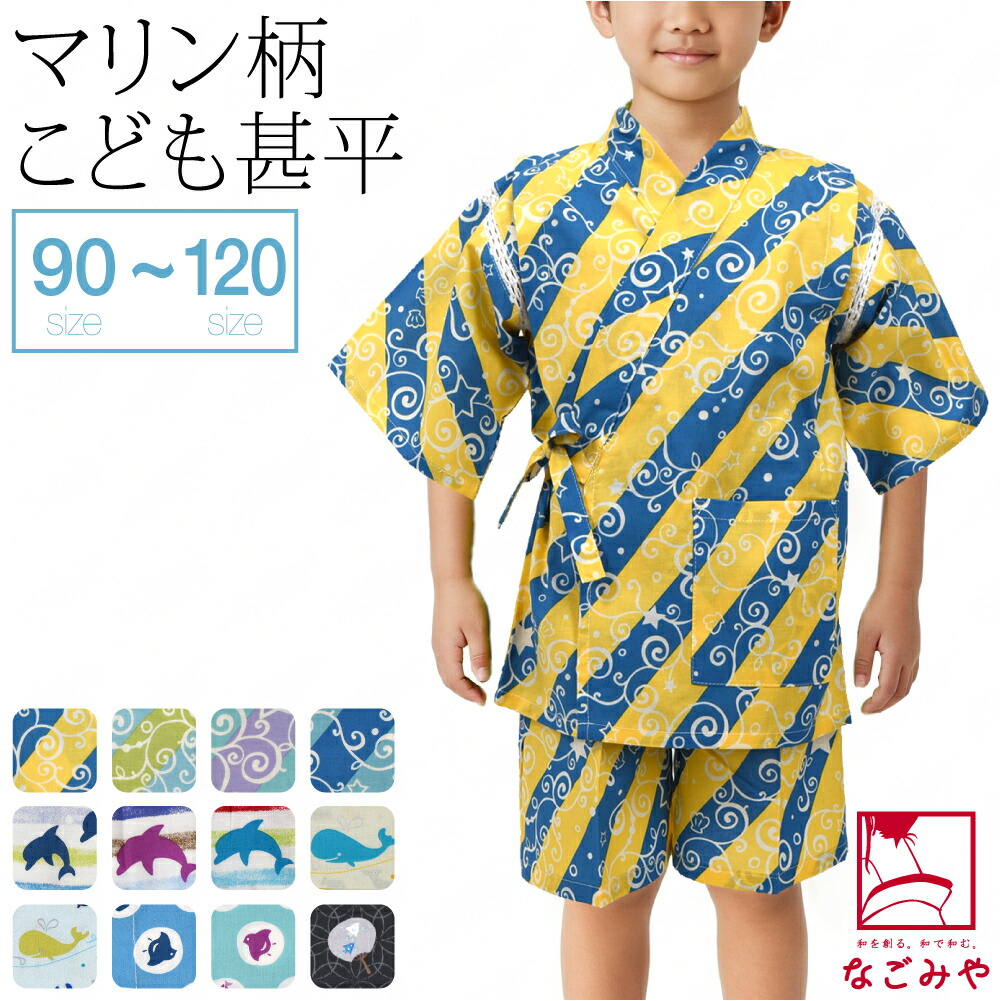 蒸し暑い日が続くサマーシーズンの誕生日プレゼントなら、涼しくて快適な子供用甚平を贈っても。船や碇、クジラやイルカなど、マリン柄が爽やかな「なごみや」の商品。