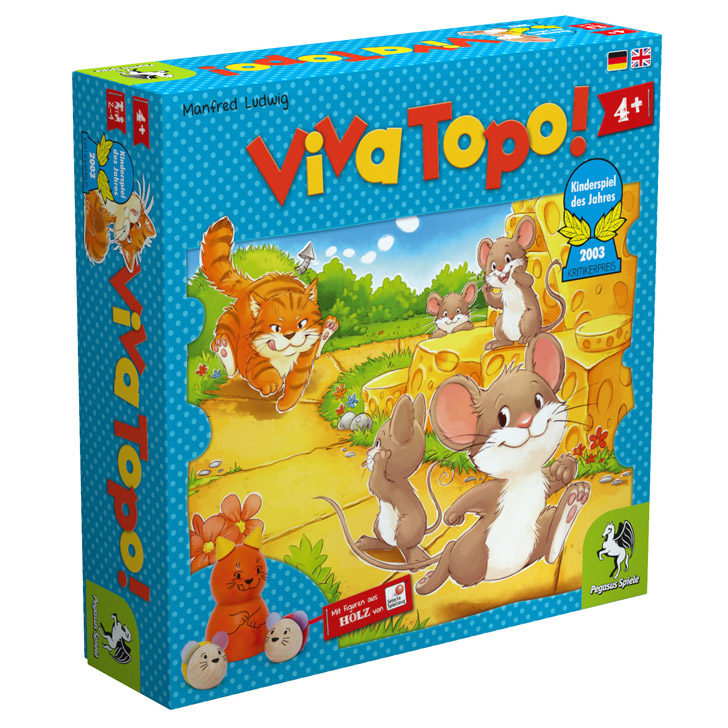 サイコロを振ってチーズを獲得しながらゴールを目指す、すごろく式。プレイヤーは、ネズミがネコに追いつかれないようにコマを進めます。盤の絵柄やコマ、サイコロのデザインがかわいいのもGOOD!